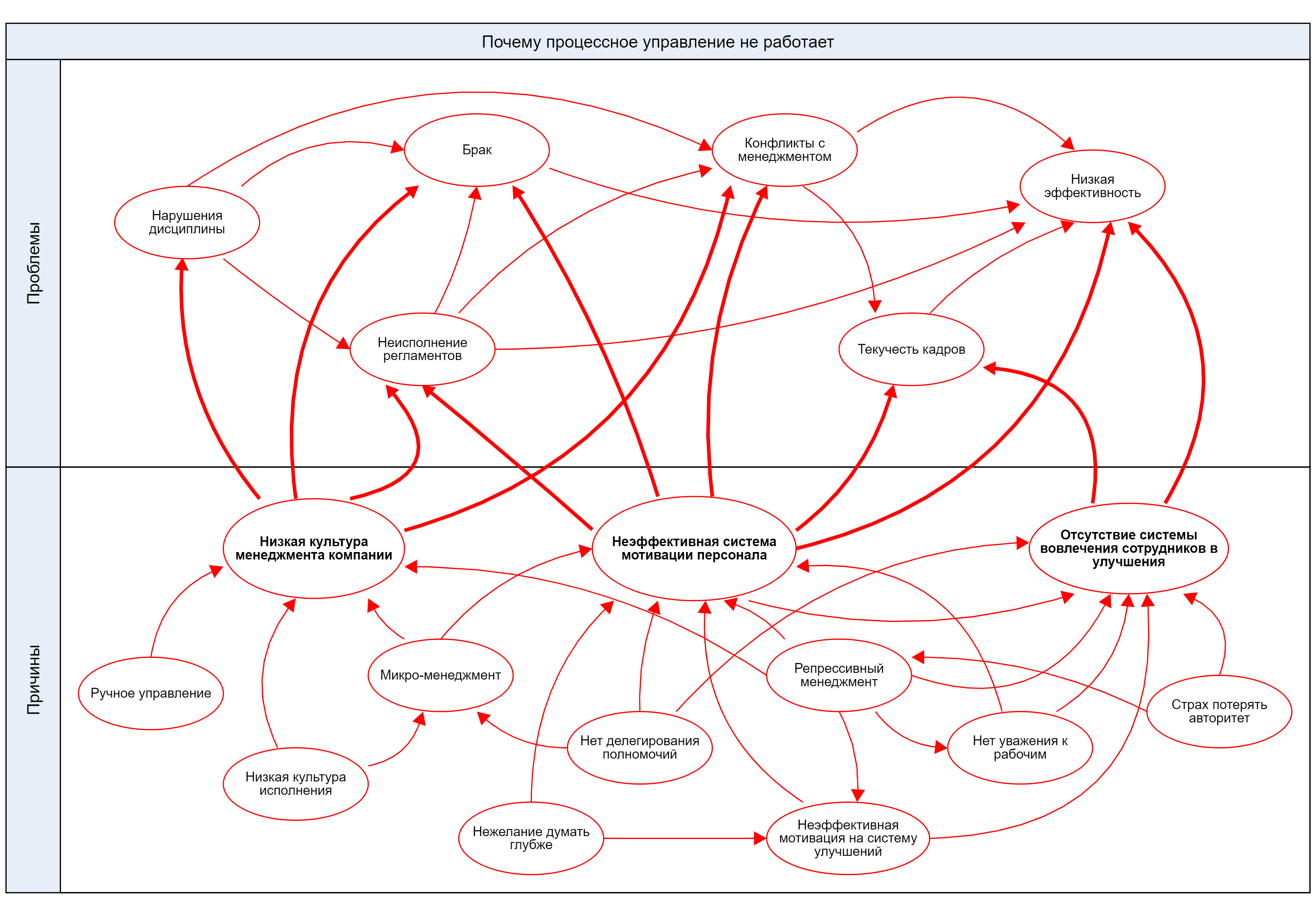 На рис. 3 показано дерево проблем и причин, показывающее, почему не работает процессное управление.