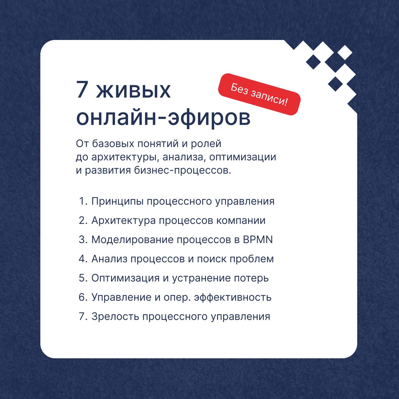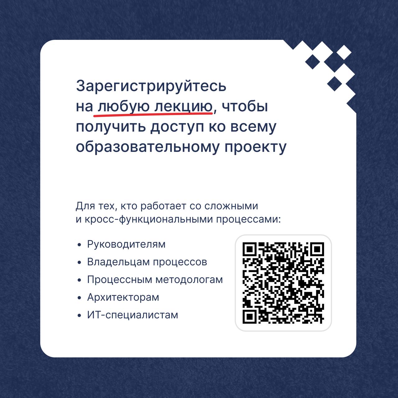 Это серия из 7 живых онлайн-лекций о BPM как системе управления компанией — не про отдельные инструменты и автоматизацию, а про управляемость, роли, архитектуру процессов и операционную эффективность в условиях высокой сложности и постоянных изменений.